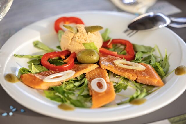 U ponudi se ističe pastrva iz Gacke, pripremljena na nekoliko načina, uz pažljivo odabrane sastojke i jela za sve ukuse uključujući veganske, vegetarijanske i bezglutenske opcije.